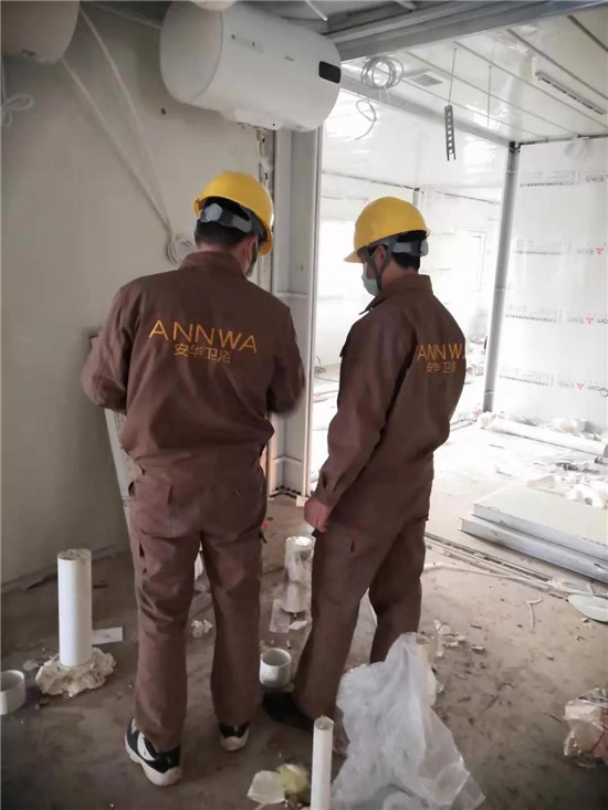 万众一心,众志成城,在此次项目中,安华卫浴工程服务团队以安华人坚韧不拔、敢于奉献的精神投身到火神山医院快速建设中,希望疫情早一天得到控制!