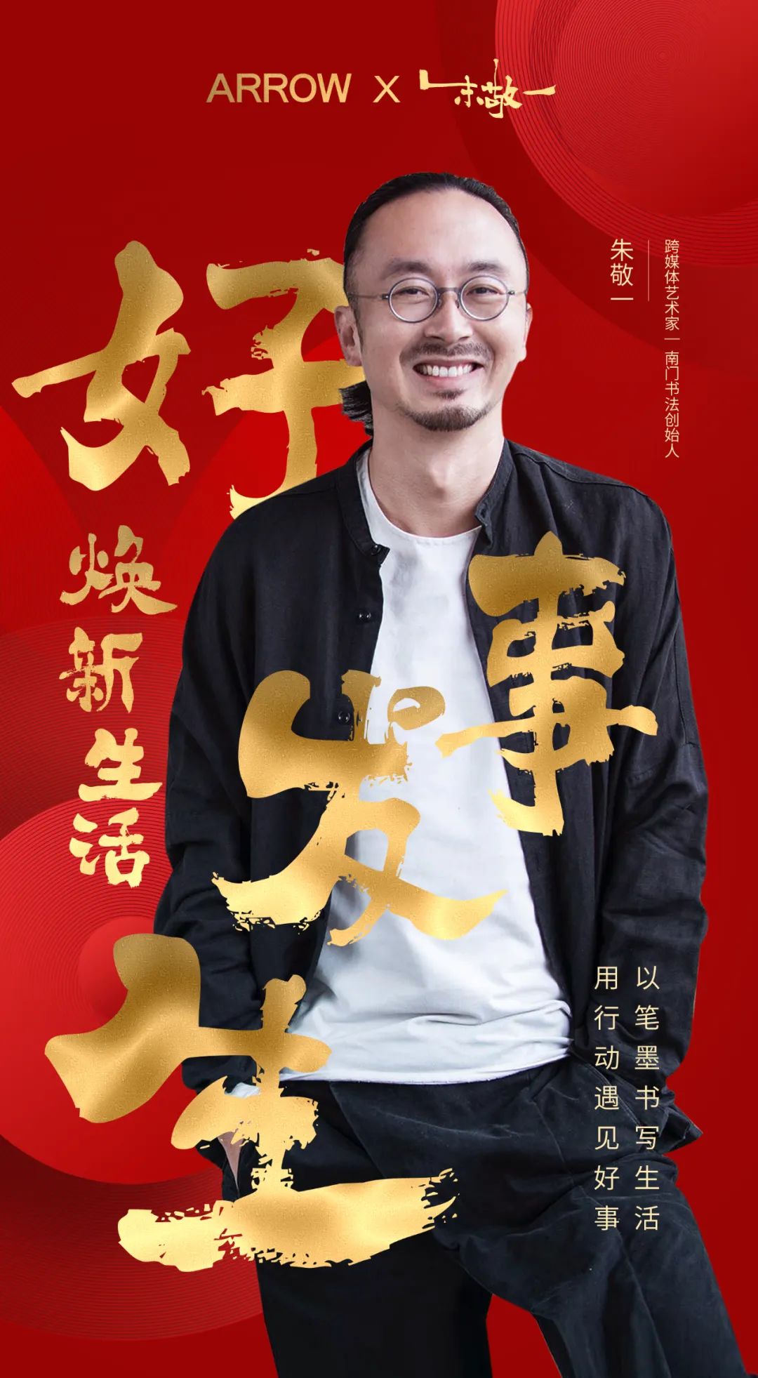 搭载新年氛围,箭牌家居选择适配度极高的创意国潮书法艺术家朱敬一合作,并在官微发布系列海报@朱敬一。经典大气的中国红,搭配华丽灿烂的鎏金字体,与朱老师谦和明亮的笑容一起向大家传递品牌的美好祝福。设计感满满的海报一经发布就吸引了大批粉丝驻足,为即将上线的ID视频积蓄了一波流量势能。