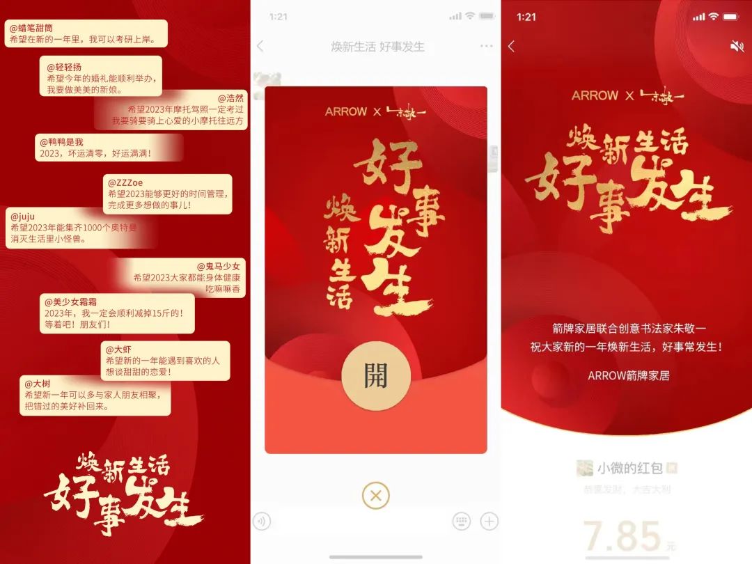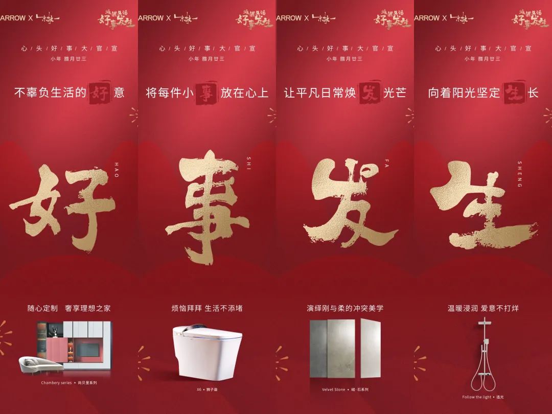 在日益浓烈的新年氛围与大众期待中,箭牌家居洞察用户对新年新生活的美好期待,释放出“焕新生活,好事发生”的营销主张,打造出了一场十分契合大众社交属性和心理期待的活动,将品牌的人文关怀融入公众易于感知的CNY营销项目中,也为行业做出优秀示范。